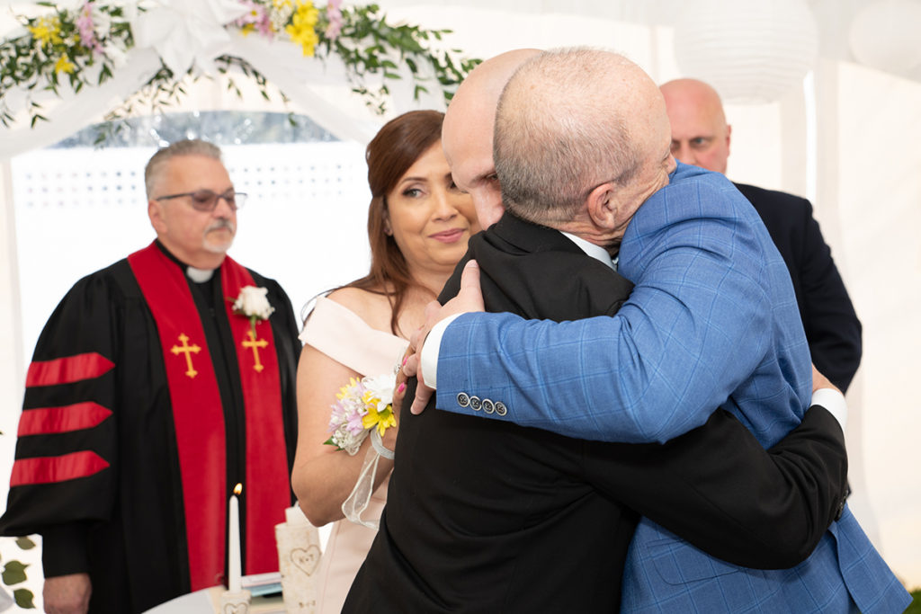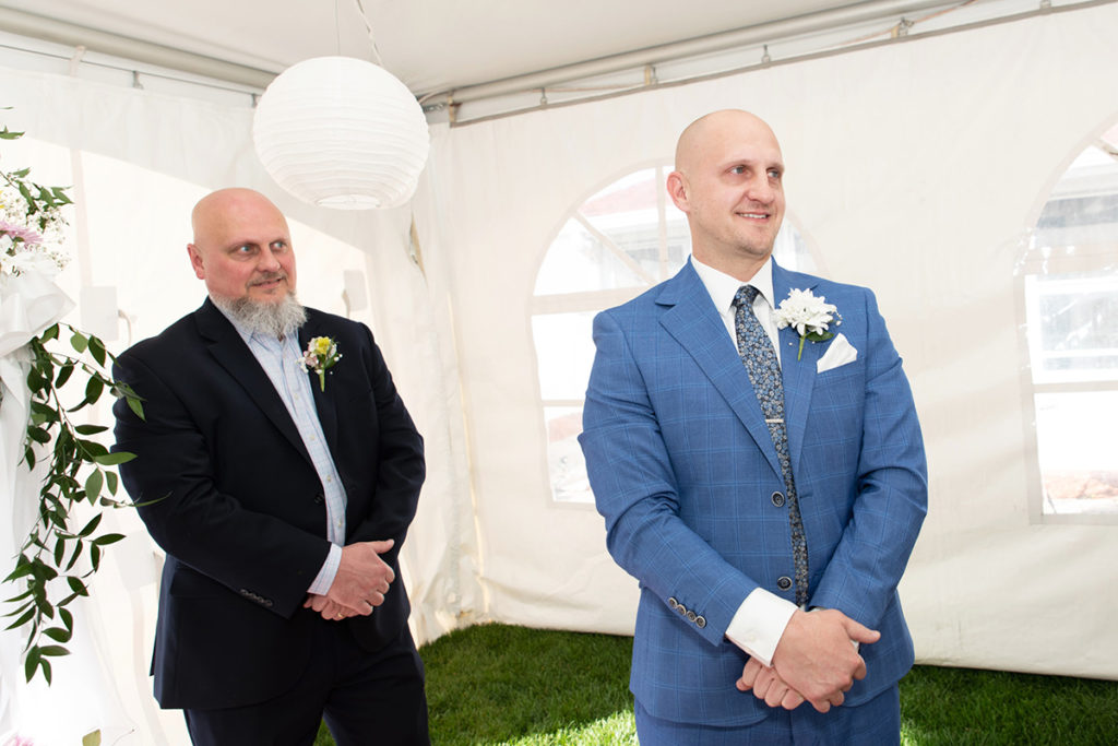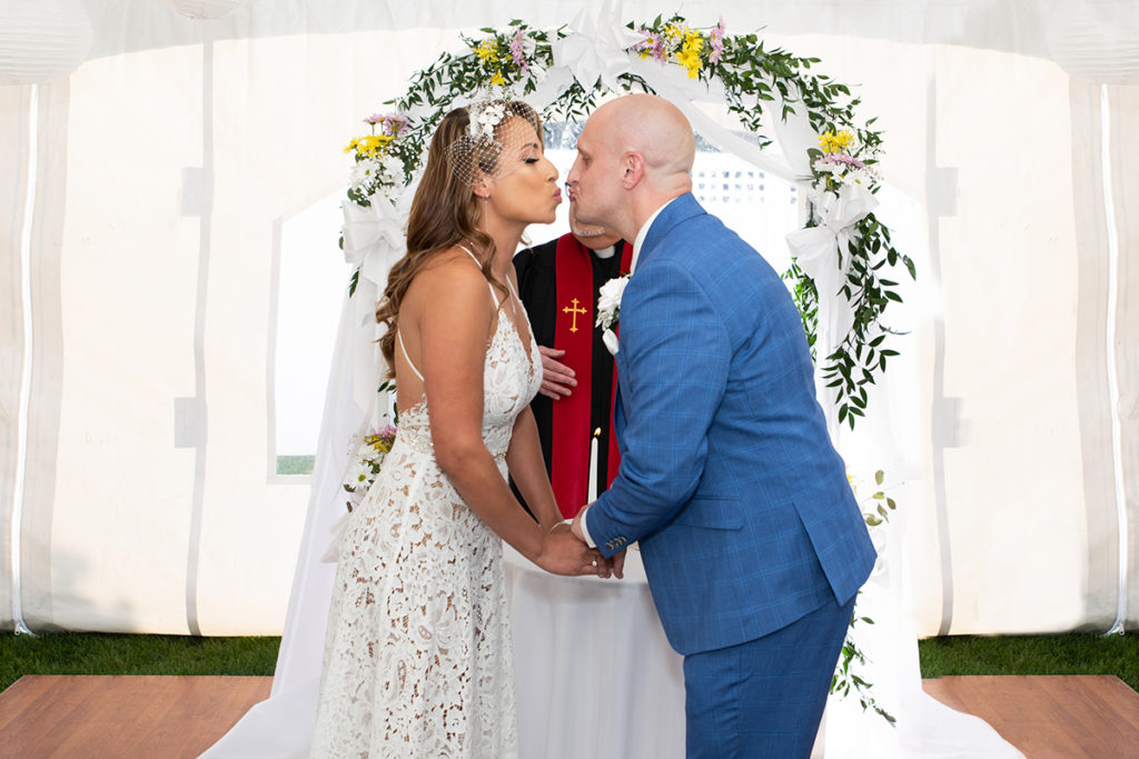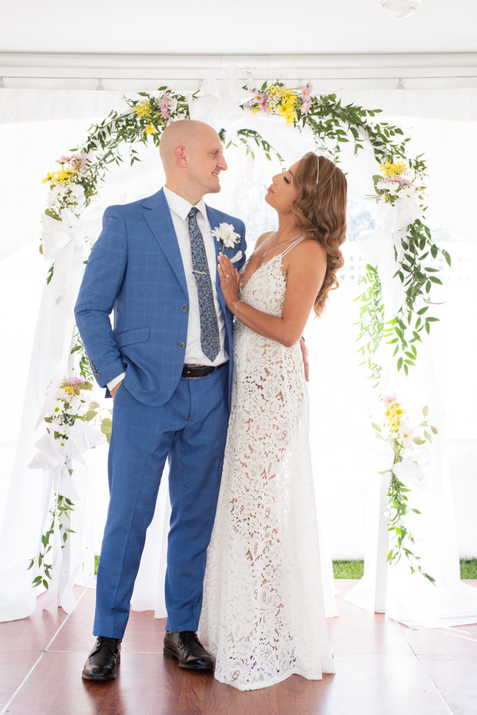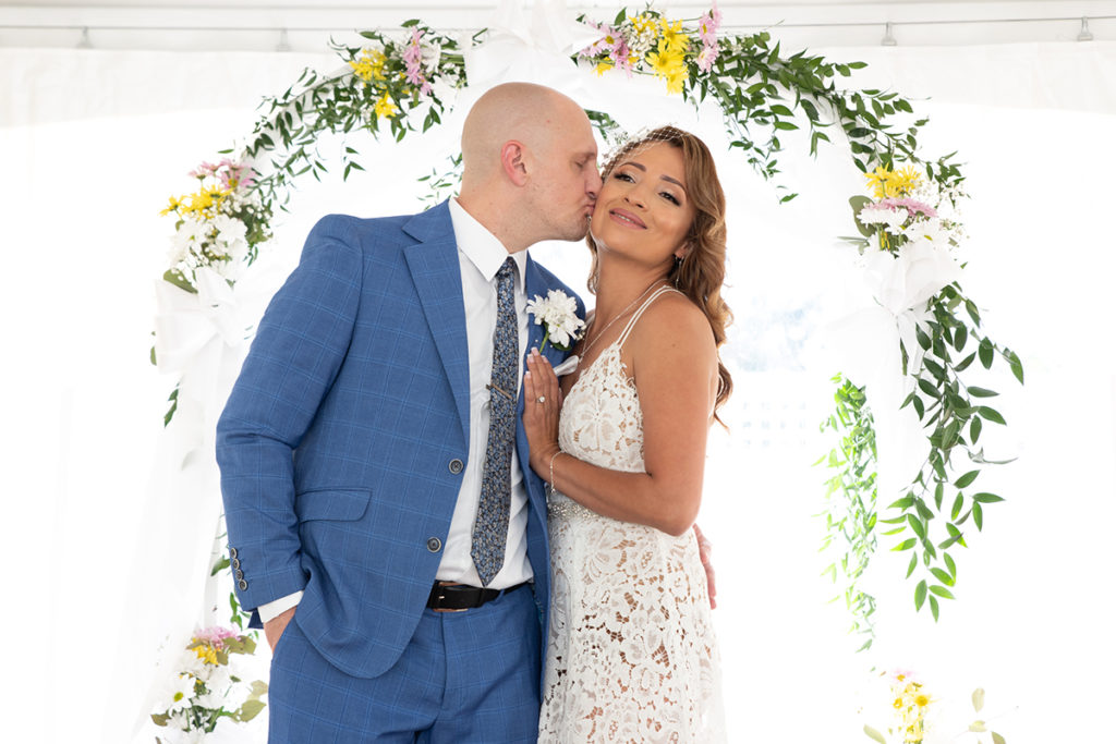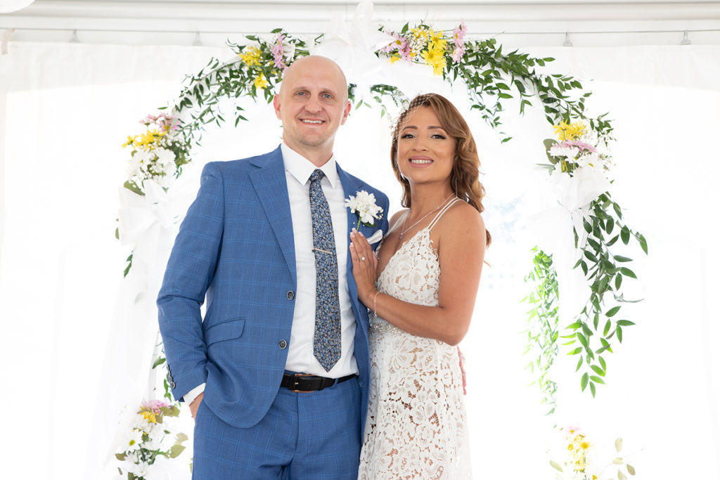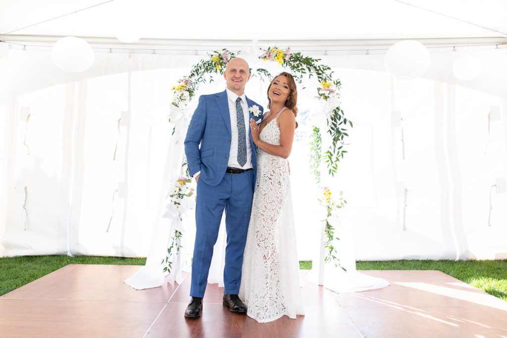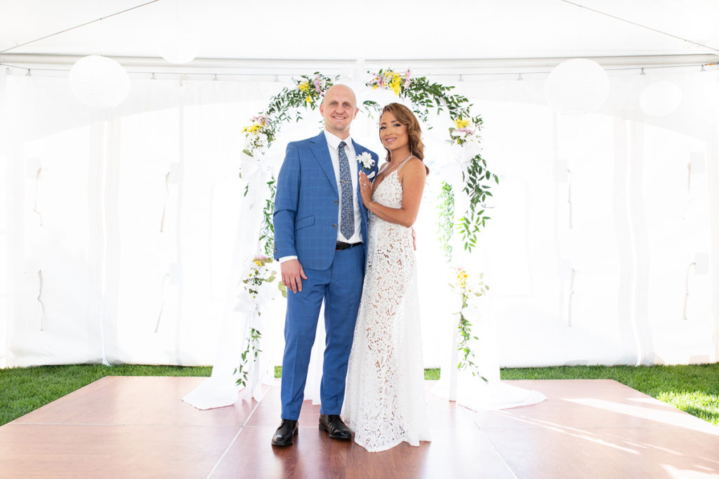 Tom & Kathy decided to leave the restraints behind, walk away from the formality of a banquet hall and have their wedding in the comfort of their own home. Having a backyard wedding was a great idea, especially in the midst of the pandemic. Kathy was able to decorate her place, making the evening more special, unique and joyful. Casual, intimate yet fun with family and friends, Tom and Kathy’s backyard will be forever filled with wedding memories.